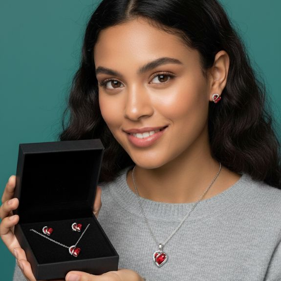 Ruby Heart Jewelry Set